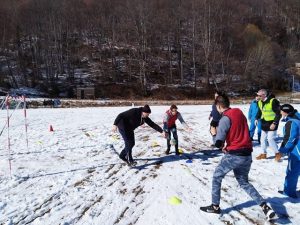 Και χάντμπολ στο χιόνι και κοντά στα άτομα με ειδικές δεξιότητες στα 3-5 Πηγάδια