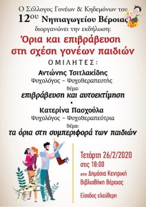 Ο Σύλλογος Γονέων και Κηδεμόνων του 12ου Νηπιαγωγείου Βέροιας διοργανώνει ενημερωτική εκδήλωση με ομιλητές τον κ. Αντώνη Τσιτλακίδη,…