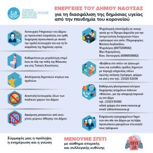 Ενέργειες του Δήμου Η.Π. Νάουσας για την διασφάλιση της δημόσιας υγείας από την πανδημία του κορονοϊού.