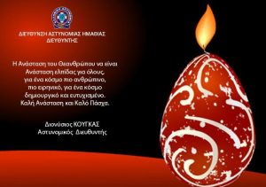 Πασχαλινές ευχές από τον Αστυνομικό Διευθυντή Ημαθίας Δ. Κούγκα