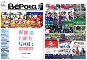 Πρωτοσέλιδα εφημερίδων ΒΕΡΟΙΑ – ΚΕΡΚΙΔΑ