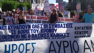 Στην Αθήνα κατέβηκε την Τρίτη 16 Ιουνίου, ομάδα συμβασιούχων (4000 ΟΑΕΔ) του νοσοκομείου Νάουσας όπου συμμετείχε στην απεργιακή κινητοποίηση..