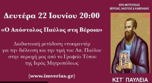 Παρακολουθήστε σήμερα Δευτέρα 22 Ιουνίου στις 8:00 μ.μ. το ντοκιμαντέρ για την διέλευση και την τιμή του Απ. Παύλου στην περιοχή μας «Ο…