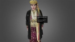 Κοντόμεσο εφαρμοστό μπούστο, φαρδιά φούστα με καλοσιδερωμένες πιέτες, πλούσιο χρυσό κέντημα και δαντέλα σε πολλούς και περίτεχνους…