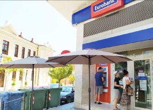 Με δύο μεγάλες ομπρέλες έξω από το υποκατάστημα της Μητροπόλεως και Αγ. Δημητρίου στη Βέροια, συμβάλλει η Eurobank στη μείωση της ταλαιπωρίας…