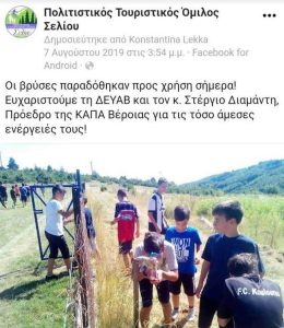 Μετά την ανακοίνωση της ΔΕΥΑΒ για την ακαταλληλότητα του νερού στις δημόσιες βρύσες του Σελίου ο Τουριστικός Όμιλος Σελίου διευκρινίζει..