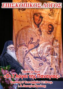 Την Κυριακή 27 Σεπτεμβρίου στις 11:30 π.μ. στον Ιερό Ναό Κοιμήσεως της Θεοτόκου Ναούσης ο Σεβασμιώτατος Μητροπολίτης μας κ. Παντελεήμων, θα…