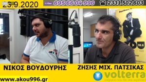 Ακούστε στην εκπομπή του ΑΚΟΥ 99,6 «Λαϊκά και Αιρετικά» της Τετάρτης 23 Σεπτεμβρίου 2020 με τους Ζήση Μιχ. Πατσίκα και Νίκο Βουδούρη:- Συζήτηση