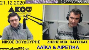 Ακούστε στην εκπομπή «Λαϊκά και Αιρετικά» της Δευτέρας 21 Δεκεμβρίου 2020, με τους Ζήση Μιχ. Πατσίκα και Νίκο Βουδούρη:
