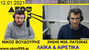 99,6 «Λαϊκά και Αιρετικά» της Τρίτης 12 Ιανουαρίου 2021, με τους Ζήση Μιχ. Πατσίκα και Νίκο