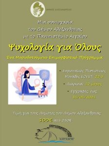 Σε συνεργασία με το πανεπιστήμιο Αιγαίου προχώρησε ο Δήμος Αλεξάνδρειας και πιο συγκεκριμένα με τα Προγράμματα Ψυχικής Υγείας. Έτσι,…