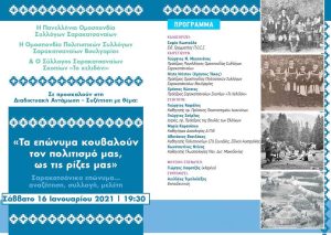 Το Σάββατο 16 Ιανουαρίου 2021 στις 19:30 η Πανελλήνια Ομοσπονδία Συλλόγων Σαρακατσαναίων (Π.Ο.Σ.Σ.), η Ομοσπονδία Πολιτιστικών Συλλόγων…