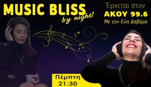 Έρχεται το νέο ανανεωμένο Music Bliss By Night! Αυτή τη φορά σε ζωντανή μετάδοση!Με ξένη και ελληνική μουσική, διαφορετική διάθεση, διαφορετικό ύφος.