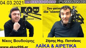 99,6 «Λαϊκά και Αιρετικά» της Πέμπτης 4 Μαρτίου 2021, με τους Ζήση Μιχ. Πατσίκα και Νίκο