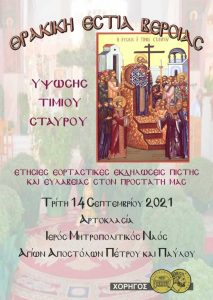 Η Θρακική Εστία Βέροιας στα πλαίσια των 20ων ετησίων εκδηλώσεων της Παγκόσμιας Ημέρας Υψώσεως του Τίμιου Σταυρού (Πίστης και Ευλάβειας στον