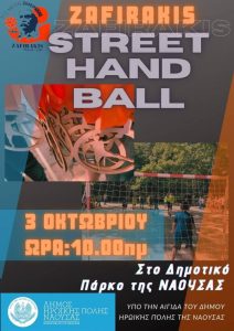 Τουρνουά «street handball» οργανώνεται από το τμήμα χάντμπολ του Ζαφειράκη, υπό την αιγίδα του Δήμου Νάουσας, την Κυριακή 3 Οκτωβρίου 2021, (από τις…