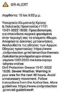 SMS για επικίνδυνα καιρικά φαινόμενα στους κατοίκους των Πιερίων