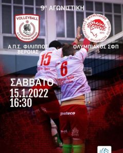 Το Σάββατο 15 Ιανουαρίου στο ΔΑΚ Δ. Βικέλας στις 16.30 ο Φίλιππος Βέροιας θα αντιμετωπίσει τον ισχυρό Ολυμπιακός στα πλαίσια της 9ης…
