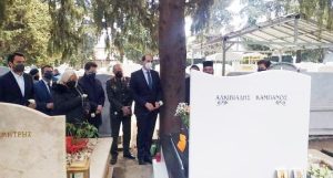Από ένα λευκό γαρύφαλλο άφησαν στον τάφο του 19χρονου Άλκη Καμπανού ο υφ.οικονομικών Απόστολος Βεσυρόπουλος, οι βουλευτές Άγγελος Τόλκας…