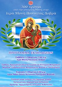Επετειακές λατρευτικές εκδηλώσεις το Σαββατοκύριακο 12-13 Μαρτίου στην Παναγία Δοβρά και στην ηρωική Νάουσα.