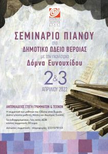 Σεμινάριο πιάνου με την διάσημη παιδαγωγό και σολίστ στο πιάνο Δόμνα Ευνουχίδου στο Δημοτικό Ωδείο Βέροιας