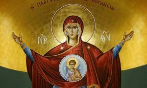 ΚΟΝΤΑΚΙΟ: «Τη Υπεράαχω Στρατηηγώ τα νικητήριαΩς λυτρωθείσα των δεινών ευχαριστήριαΊνα κράζωσι: Χαίρε Νύμφη Ανύμφεττε»Μετάφραση « Εγώ..