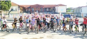 Μαθητές δάσκαλοι και γονείς του Δημοτικού Σχολείου Επισκοπής φόρεσαν τα κράνη τους, πήραν τα ποδήλατά τους και με τη συνδρομή της τροχαίας.
