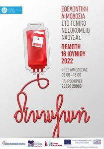 Με αφορμή την παγκόσμια ημέρα εθελοντή αιμοδότη, το Κέντρο Κοινότητας Δήμου Νάουσας και το Κέντρο Κοινωνικής Προστασίας & Αλληλεγγύης του..