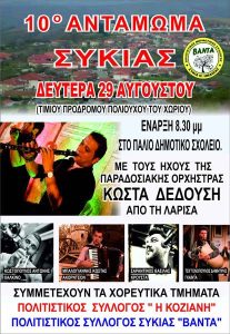 Το 10 Αντάμωμα Συκιάς θα πραγματοποιηθεί την Δευτέρα 29 Αυγούστου 2022, Τίμιου Προδρόμου, Πολιούχος του χωριού.Η εκδ΄ήλωση θα ξεκινήσει στις…