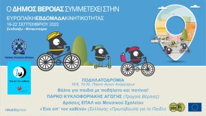 Στην Ευρωπαϊκή Εβδομάδα Κινητικότητας (16-22 Σεπτεμβρίου 2022) και Ημέρα Χωρίς Αυτοκίνητο (18 Σεπτεμβρίου 2022) συμμετέχει ο Δήμος Βέροιας με τη…