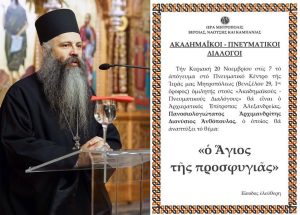 Τήν Κυριακή 20 Νοεμβρίου στίς 7 τό ἀπόγευμα στό Πνευματικό Κέντρο τῆς Ἱερᾶς μας Μητροπόλεως (Βενιζέλου 29, 1ος ὄροφος) ὁμιλητής στούς…