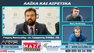 Σε τηλεφωνική επικοινωνία που είχαν οι Ζήσης Μιχ. Πατσίκας και Νίκος Βουδούρης στην ραδιοφωνική εκπομπή ΛΑΪΚΑ&ΑΙΡΕΤΙΚΑ του ΑΚΟΥ 99,6 με τον…