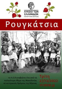 Ένα από τα παλαιότερα έθιμα της Μακεδονίας, τα Ρουγκάτσια θα αναβιώσουμε ως Λύκειο των Ελληνίδων Βέροιας την Τρίτη 27 Δεκεμβρίου σε…