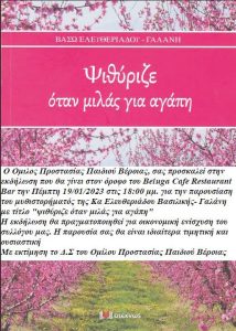 O Όμιλος Προστασίας Παιδιού Βέροιας, σας προσκαλεί στην εκδήλωση που θα γίνει στον όροφο του Beluga Cafe Restaurant Bar, την Πέμπτη 19/01/2023 στις 18:00 μμ. για