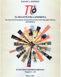 Χθες είχα την χαρά να πάρω στα χέρια μου το «Ευρετήριο Περιεχομένων» του τριμηνιαίου περιοδικού των «Πολιτιστικών Δρώμενων» της τότε…
