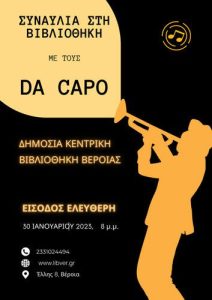 Tη Δευτέρα 30 Ιανουαρίου 2023, στις 8 το βράδυ, στην αίθουσα εκδηλώσεων της Δημόσιας Κεντρικής Βιβλιοθήκης της Βέροιας θα πραγματοποιηθεί μία…