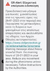 Το απόγευμα της Τετάρτης (25/01), λίγο μετά τις 6 το απόγευμα, τα κινητά πολιτών και στη Βέροια άρχισαν να χτυπούν με τον χαρακτηριστικό ήχο για.