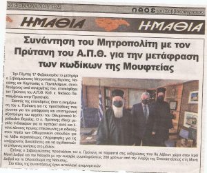 Η Επιτροπή αγώνος για τη μεταγραφή-μετάφραση των μοναδικης παλαιότητας και σπανιότητας κωδίκων της Μουφτείας Βέροιας απαντά σε…
