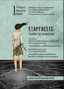 Ο Σύλλογος Γονέων και Κηδεμόνων και ο Σύλλογος Διδασκόντων του 1ου ΓΕ.Λ. Βέροιας σας προσκαλεί σε εκδήλωση με θέμα: ΕΞΑΡΤΗΣΕΙΣ: ο ρόλος της…
