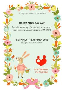 Η Πρωτοβουλία για το Παιδί πιστή στο ραντεβού της, ανακοινώνει το Πασχαλινό Bazaar της, που θα γίνει από τη Δευτέρα 3 Απριλίου έως και το Μ….