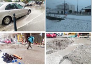 Δέκα λεπτά ήταν αρκετά για να γίνουν οι δρόμοι ποτάμια από το ξαφνικό μπουρίνι που ξέσπασε χθες λίγο πριν τις 2 το μεσημέρι στην περιοχή μας,