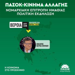 Πρόσκληση της Νομαρχιακής Επιτροπής ΠΑΣΟΚ-Κινήματος Αλλαγής Ημαθίας στην πολιτική εκδήλωση την Πέμπτη 22 Ιουνίου και ώρα 20:30 μ.μ. στον…