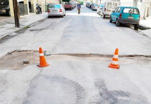 Μετά από αρκετό καιρό που ολοκληρώθηκαν τα έργα της ΔΕΥΑΒ, έφτασε η ώρα να αποκατασταθούν οι λακκούβες που έκλεισαν πρόχειρα με χαλίκι και..