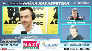 Ο εκπρόσωπος του ΕΚΕΔΙΜ-Θεοχαρόπουλος, Αντώνης Θεοχαρόπουλος, βρέθηκε το μεσημέρι της Τετάρτης (28/6) στο στούντιο του ΑΚΟΥ 99,6 και την…