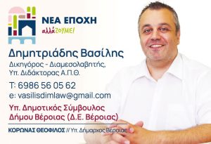 Βιογραφικό σημείωμα του Βασίλη Δημητριάδη υπ. δημοτικού συμβούλου με τον συνδυασμό «Νέα Εποχή – αλλάΖΟΥΜΕ» του Θεόφιλου Κορωνά