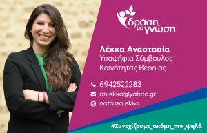 Ονομάζομαι Λέκκα Αναστασία (Νατάσσα). Είμαι κόρη του Παναγιώτη Λέκκα και της Στέλλας Σπανού-Λέκκα. Γεννήθηκα και μεγάλωσα στη Βέροια. Για…