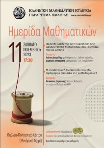 Το παράρτημα της Ελληνικής Μαθηματικής Εταίρείας Ημαθίας διοργανώνει Ημερίδα Μαθηματικών που θα πραγματοποιηθεί Σάββατο 11 Νοεμβρίου 2023…