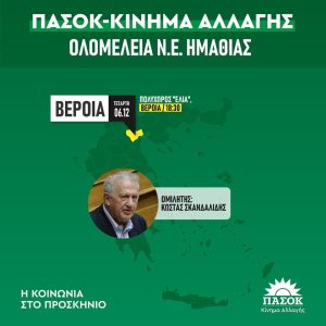 Την Τετάρτη 6 Δεκεμβρίου και ώρα 18:30 καλούνται, στον Πολυχώρο ΕΛΙΑ, τα μέλη και οι φίλοι του ΠΑΣΟΚ – Κινήματος Αλλαγής Ημαθίας σε Ολομέλεια…