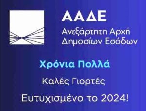 «Απ’ όλες και όλους μας στην ΑΑΔΕ δεχθείτε τις εγκάρδιες ευχές μας για χρόνια πολλά και καλά! Καλά Χριστούγεννα κι ευτυχισμένο το 2024! Αγάπη,