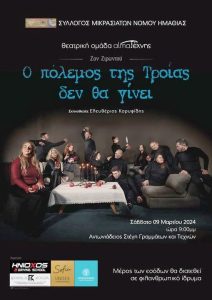 Η Θεατρική Ομάδα almaΤέχνης παρουσιάζει το έργο του Ζαν Ζιρωντού “Ο Πόλεμος της Τροίας δεν θα γίνει” σε 2 παραστάσεις στην Αντωνιάδειο Στέγη